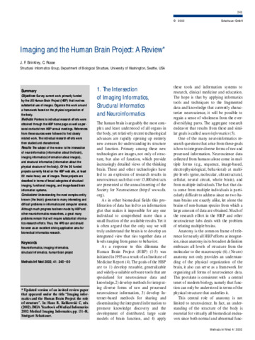 Brinkley, James F and Rosse, Cornelius (2002) Imaging and the Human Brain Project: a Review. Methods of Information in Medicine, 41. pp. 245-260.