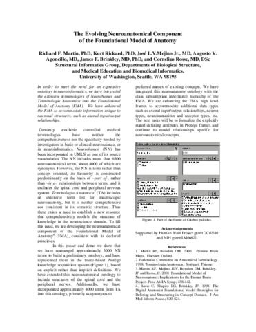 Martin, Richard F and Rickard, K. and Mejino, Jose L V and Agoncillo, Augusto V and Brinkley, James F and Rosse, Cornelius (2003) The Evolving Neuroanatomical Component of the Foundational Model of Anatomy. In: American Medical Informatics Association Fall Symposium. p. 927.