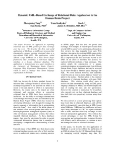 Tang, Z. and Kadiyska, Y. and Li, Hao and Suciu, Dan and Brinkley, James F (2003) Dynamic XML Based Exchange of Relational Data: Application to the Human Brain Project. In: American Medical Informatics Association Fall Symposium. pp. 649-653.