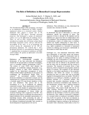 Michael, J. and Mejino, Jose L V and Rosse, Cornelius (2001) The Role of Definitions in Biomedical Concept Representation. In: American Medical Informatics Association Fall Symposium. pp. 463-467.