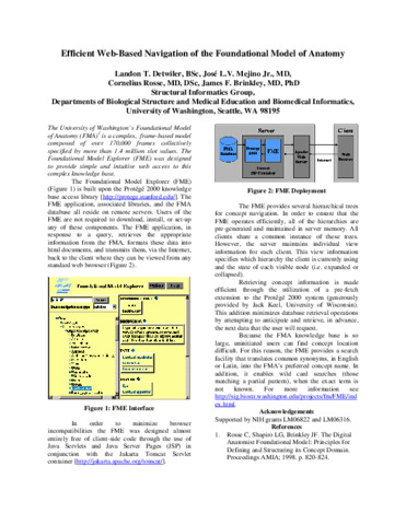 Detwiler, Landon T and Mejino, Jose L V and Rosse, Cornelius and Brinkley, James F (2003) Efficient Web-Based Navigation of the Foundational Model of Anatomy. In: American Medical Informatics Association Fall Symposium. p. 829.
