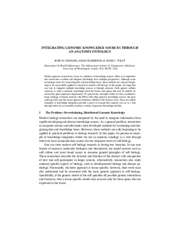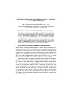 Gennari, John H and Silberfein, Adam and Wiley, Jesse (2004) Integrating Genomic Knowledge Sources through an Anatomy Ontology. In: 2005 Pacific Symposium on BioComputing.