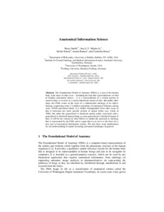 Smith, Barry and Mejino, Jose L V and Schultz, Stefan and Kumar, Anand and Rosse, Cornelius (2005) Anatomical information science. In: Seventh International Conference on Spatial Information Theory COSIT 2005. pp. 149-164.