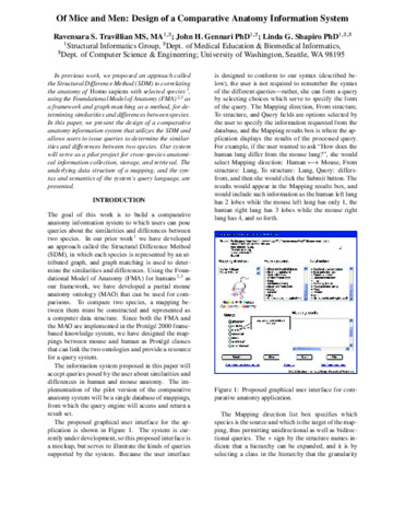 Travillian, Ravensara S and Gennari, John H and Shapiro, Linda G (2005) Of Mice and Men: Design of a Comparative Anatomy Information System. In: American Medical Informatics Association Fall Symposium.