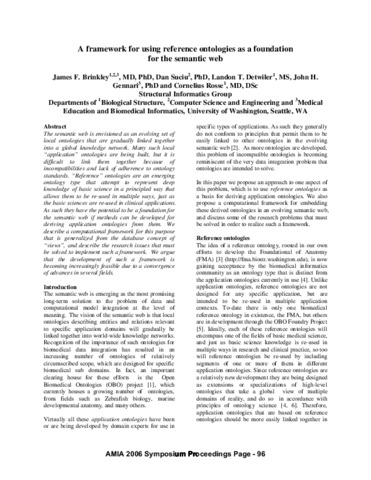 Brinkley, James F and Suciu, Dan and Detwiler, Landon T and Gennari, John H and Rosse, Cornelius (2006) A framework for using reference ontologies as a foundation for the semantic web. In: American Medical Informatics Association Fall Symposium. pp. 96-100.