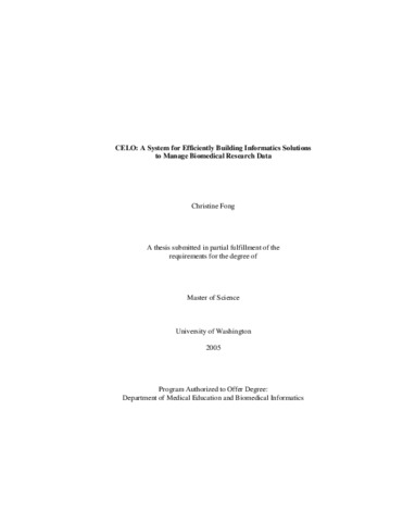 Fong, Christine (2005) CELO: A System for Efficiently Building Informatics Solutions to Manage Biomedical Research Data. Masters thesis, University of Washington.