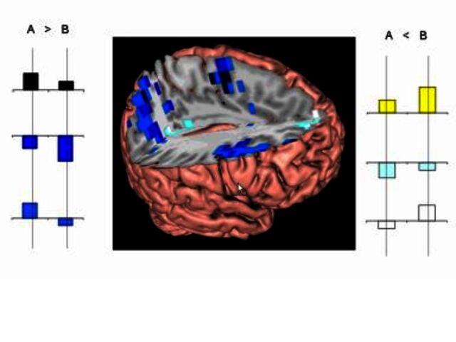 Analysis of an fMRI protocol often involves a comparison of the fMRI brain signal between task A (e.g., zero-back working memory task) and task B (e.g., 2-back working memory). When a third reference condition such as fixation is included then comparisons between the main tasks and this reference are also possible (e.g. 2-back versus fixation). In this case, the fMRI signal from each voxel�s response with regard to fixation can be classified into one of six possible response patterns (1), three for A > B (both A and B > fixation; both A and B < fixation; A > fixation > B) and three for B > A.