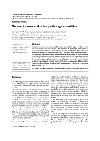 Smith, Barry and Kumar, Anand and Ceusters, Werner and Rosse, Cornelius (2005) On carcinomas and other pathological entities. Comparative and Functional Genomics, 6 (7-8). pp. 379-387.