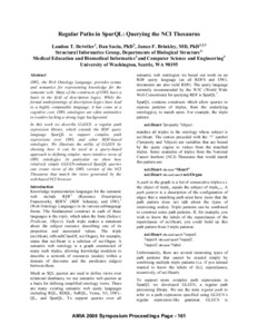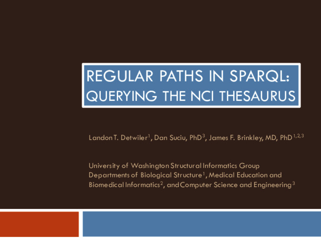 Detwiler, Landon T and Suciu, Dan and Brinkley, James F (2008) Regular Paths in SparQL: Querying the NCI Thesaurus. In: American Medical Informatics Association Fall Symposium. pp. 161-165.