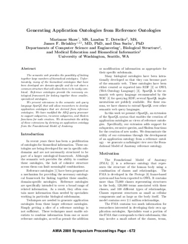 Shaw, Marianne and Detwiler, Landon T and Brinkley, James F and Suciu, Dan and Mejino, Jose L V (2008) Generating Application Ontologies from Reference Ontologies. In: American Medical Informatics Association Fall Symposium. pp. 672-676.