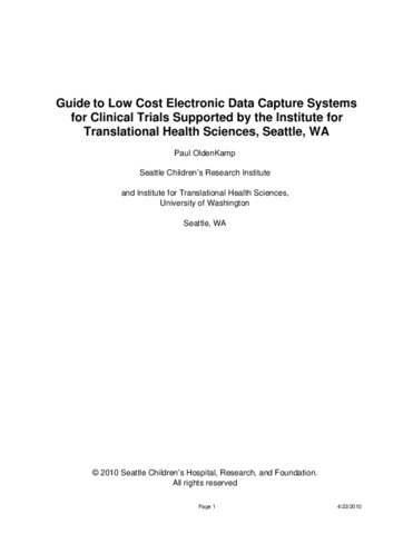 Oldenkamp, Paul (2010) Guide to Low Cost Electronic Data Capture Systems for Clinical Trials. Technical Report.