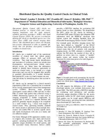 Nichols, Nolan and Detwiler, Landon T and Franklin, Joshua D and Brinkley, James F (2011) Distributed Queries for Quality Control Checks in Clinical Trials. In: Clinical Research Informatics Summit of the American Medical Informatics Association. p. 115.