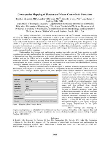 Mejino, Jose L V and Detwiler, Landon T and Cox, Timothy C and Brinkley, James F (2017) Cross-species Mapping of Human and Mouse Craniofacial Structures. In: Proceedings, Annual Symposium of the American Medical Informatics Association. p. 2105.