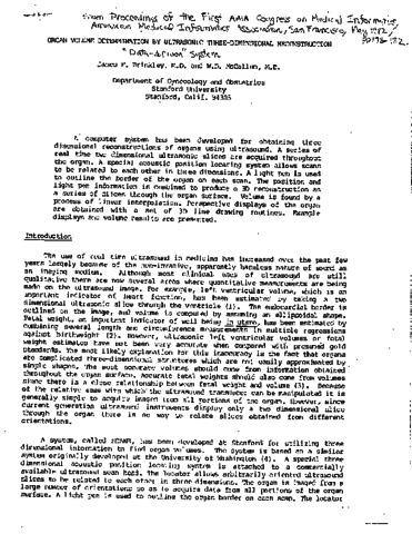Brinkley, James F and McCallum, W D (1982) Organ volume determination by ultrasonic three-dimensional reconstruction. In: Proceedings of the First AMIA Congress on Medical Informatics. American Medical Informatics Association, San Francisco pp. 178-182.