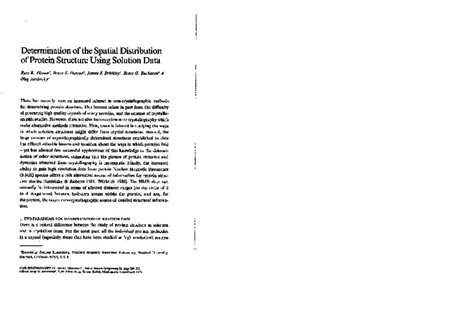 Altman, R. B. and Duncan, B. S. and Brinkley, James F and Buchanan, B. G. and Jardetzky, O. (1988) Determination of the spatial distribution of protein structure using solution data. In: Proceedings of Alfred Benzon Symposium 26: NMR Spectroscopy in Research,. pp. 209-232.