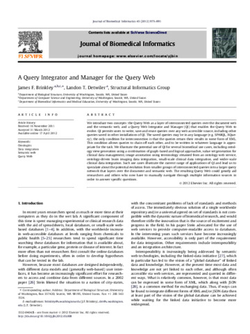 Brinkley, James F and Detwiler, Landon T. (2012) A Query Integrator and Manager for the Query Web. Journal of Biomedical Informatics, 45 (5). pp. 975-991. ISSN 15320464